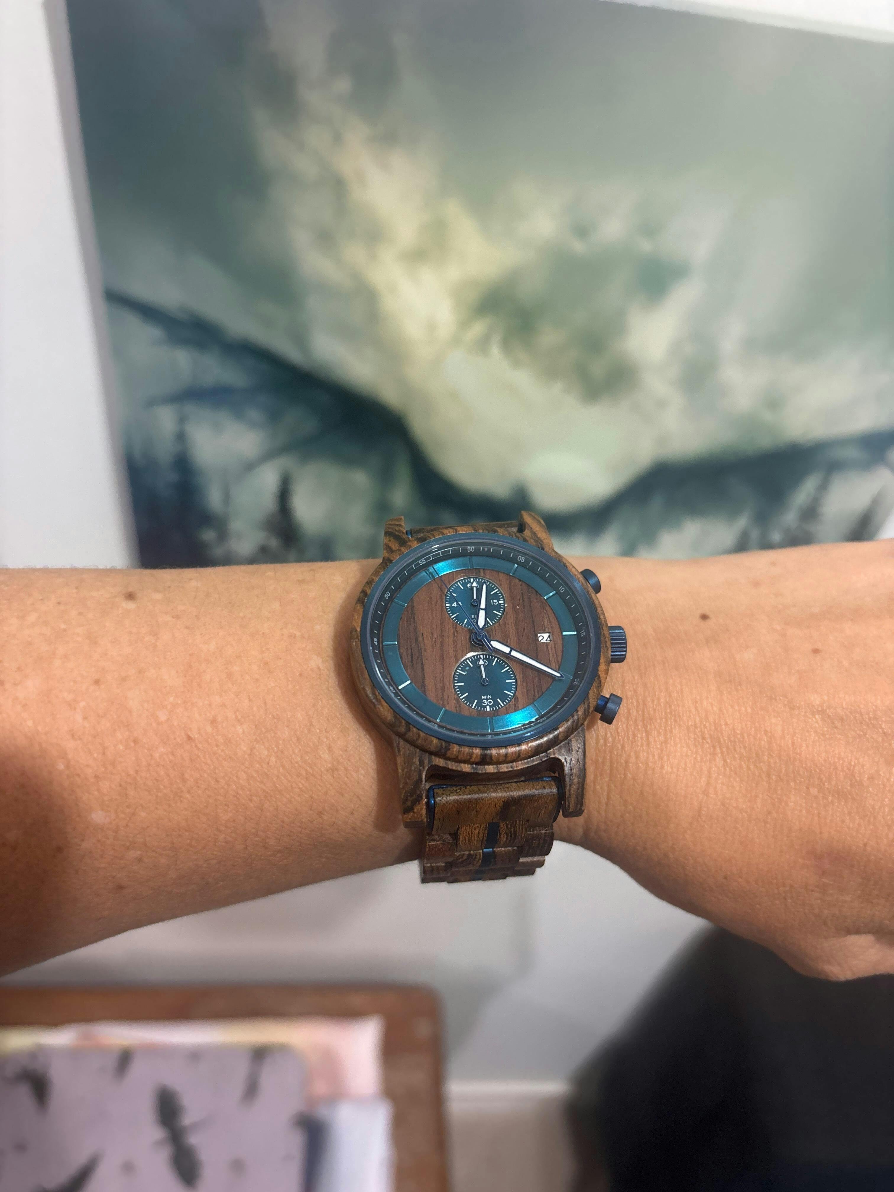 This watch was given to my spouse as a gift for a 25 year work anniversary and she LOVED it. She has been talking about getting a wood watch and this is the prettiest watch I had ever seen.