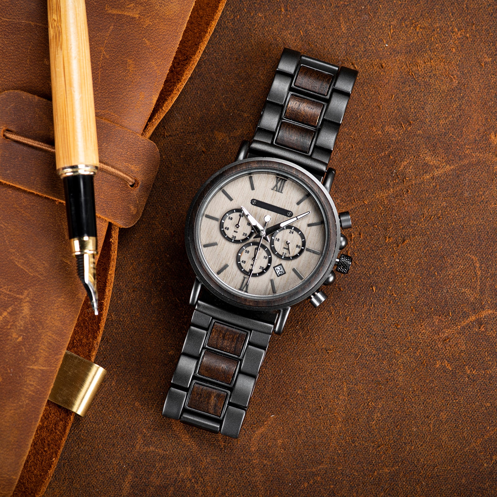 Whiskey Oak Crafted from premium aged wood, Inspired by the rich heritage of Tennessee whiskey barrels, this timepiece is a bold statement of style and craftsmanship.